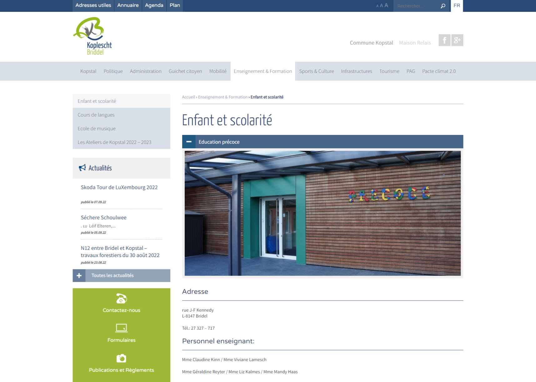 • 2 sites, 2 thèmes : Kopstal et Maison Relais
